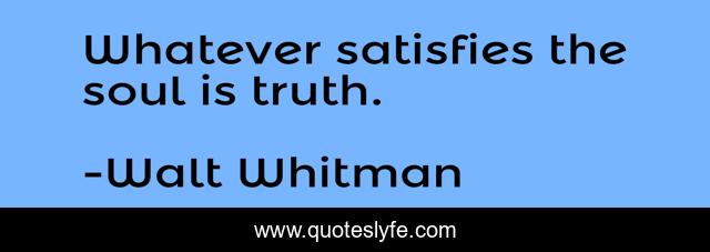 This page presents the quote "Whatever satisfies the soul is truth.". Author of this quote is Walt Whitman. This quote is about soul, truth,.
