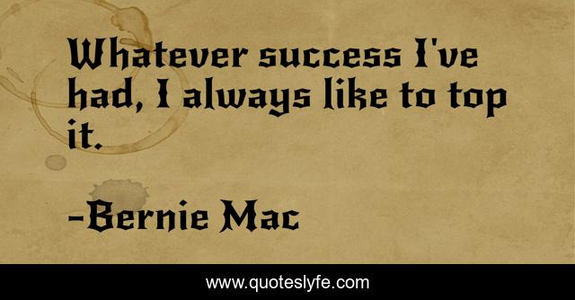 This page presents the quote "Whatever success I've had, I always like to top it.". Author of this quote is Bernie Mac. This quote is about always, like, whatever,.
