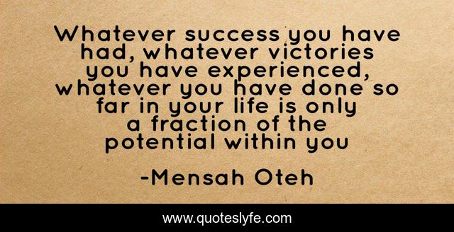 Whatever success you have had, whatever victories you have experienced, whatever you have done so far in your life is only a fraction of the potential within you
