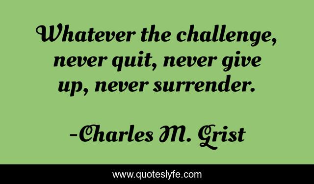 "Charles M. Grist Quotes." Quoteslyfe.com, 2025. Sat. 06 Dec. 2025. <https://www.quoteslyfe.com/quote/Whatever-the-challenge-never-quit-never-give-52947>.