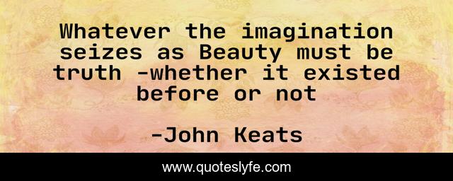"John Keats Quotes." Quoteslyfe.com, 2025. Fri. 05 Dec. 2025. <https://www.quoteslyfe.com/quote/Whatever-the-imagination-seizes-as-Beauty-must-24350>.