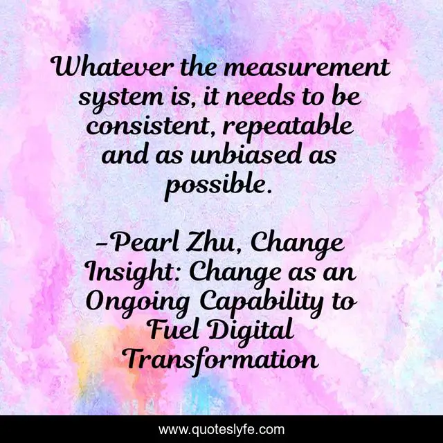 This page presents the quote "Whatever the measurement system is, it needs to be consistent, repeatable and as unbiased as possible.". Author of this quote is Pearl Zhu, Change Insight: Change as an Ongoing Capability to Fuel Digital Transformation. This quote is about change, measurement,.