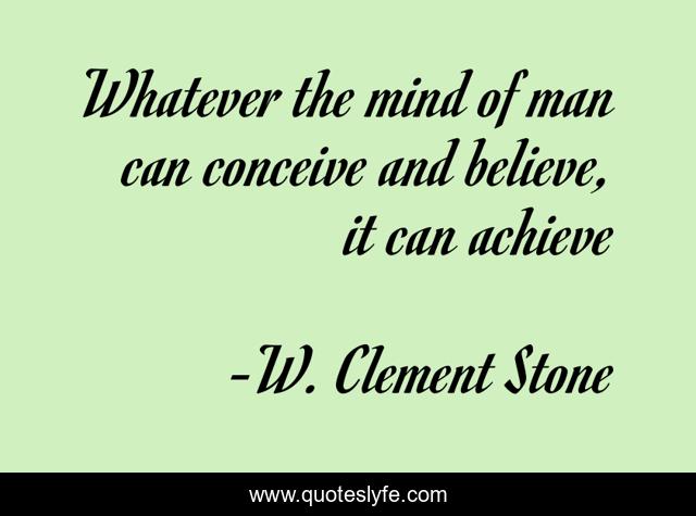 This page presents the quote "Whatever the mind of man can conceive and believe, it can achieve". Author of this quote is W. Clement Stone. This quote is about imagination, just-do-it, achievement, inspiration,.