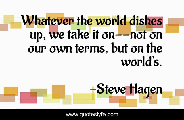 This page presents the quote "Whatever the world dishes up, we take it on--not on our own terms, but on the world's.". Author of this quote is Steve Hagen. This quote is about steve-hagen, buddhism-is-not-what-you-think, zen, budhism,.