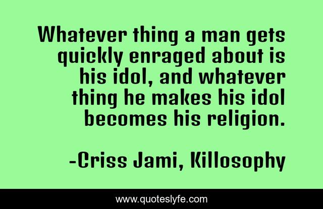 "Criss Jami, Killosophy Quotes." Quoteslyfe.com, 2025. Fri. 05 Dec. 2025. <https://www.quoteslyfe.com/quote/Whatever-thing-a-man-gets-quickly-enraged-161556>.