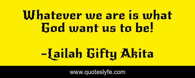 This page presents the quote "Whatever we are is what God want us to be!". Author of this quote is Lailah Gifty Akita. This quote is about god, christian, life-lessons, inspiration,.