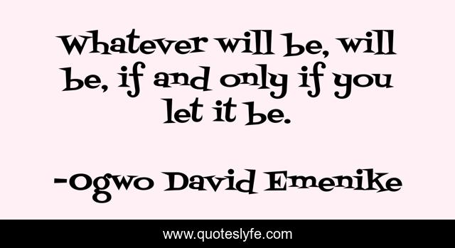 This page presents the quote "Whatever will be, will be, if and only if you let it be.". Author of this quote is Ogwo David Emenike. This quote is about choice, destiny, fate, permission,.