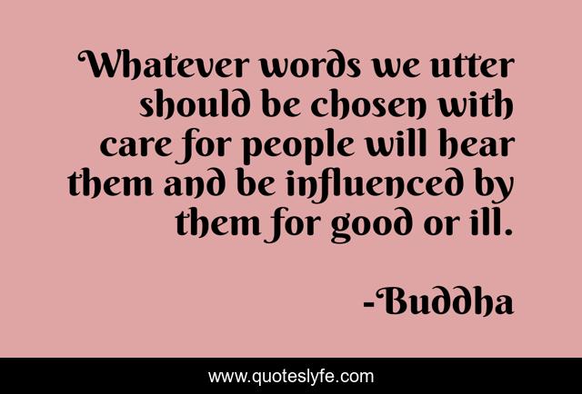 This page presents the quote "Whatever words we utter should be chosen with care for people will hear them and be influenced by them for good or ill.". Author of this quote is Buddha. This quote is about good, words, people,.