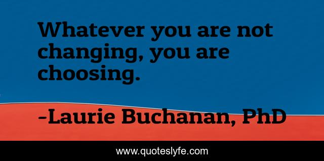 This page presents the quote "Whatever you are not changing, you are choosing.". Author of this quote is Laurie Buchanan, PhD. This quote is about confidence, positive, motivational, choices, optimistic, inspirational, enthusiasm, change,.