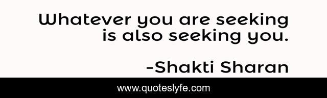 This page presents the quote "Whatever you are seeking is also seeking you.". Author of this quote is Shakti Sharan. .