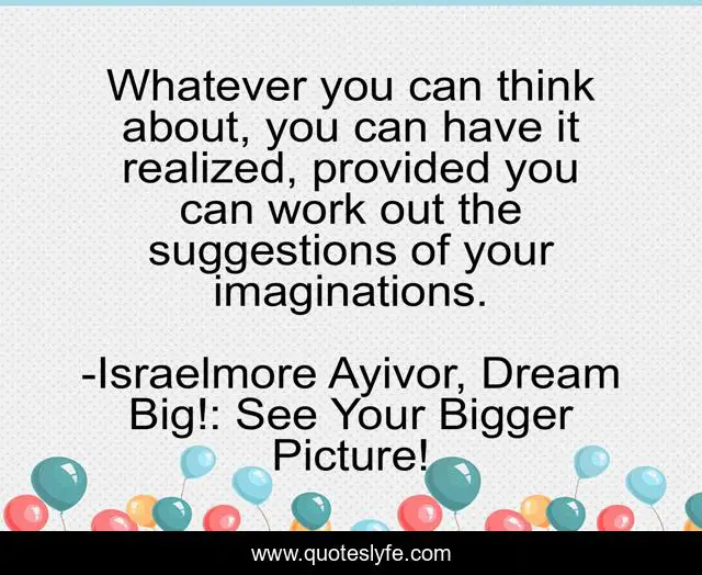 "Israelmore Ayivor, Dream Big!: See Your Bigger Picture! Quotes." Quoteslyfe.com, 2025. Sun. 07 Dec. 2025. <https://www.quoteslyfe.com/quote/Whatever-you-can-think-about-you-can-129491>.