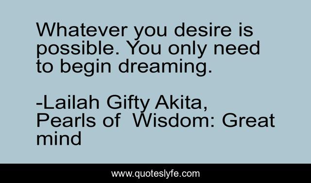 "Lailah Gifty Akita, Pearls of Wisdom: Great mind Quotes." Quoteslyfe.com, 2025. Fri. 05 Dec. 2025. <https://www.quoteslyfe.com/quote/Whatever-you-desire-is-possible-You-only-78201>.