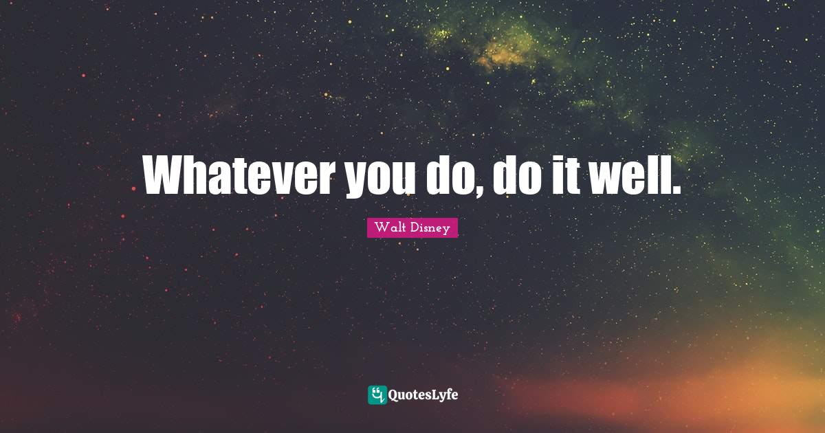 This page presents the quote "Whatever you do, do it well.". Author of this quote is Walt Disney. This quote is about life,.