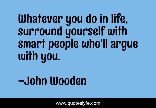 This page presents the quote "Whatever you do in life, surround yourself with smart people who'll argue with you.". Author of this quote is John Wooden. This quote is about life, smart, yourself,.