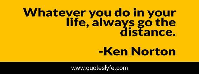This page presents the quote "Whatever you do in your life, always go the distance.". Author of this quote is Ken Norton. This quote is about perseverance, goals, persistence,.