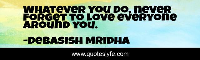 This page presents the quote "Whatever you do, never forget to love everyone around you.". Author of this quote is Debasish Mridha. This quote is about love, philosophy, debasish-mridha, whatever-you-do, quotes, never-forget-to-love, debasish-mridha-md, inspirational, enthusiasm,.