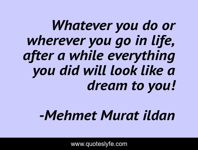 This page presents the quote "Whatever you do or wherever you go in life, after a while everything you did will look like a dream to you!". Author of this quote is Mehmet Murat ildan. This quote is about look-like, murat-ildan, whatever-you-do, dreams, dream, wherever-you-go,.