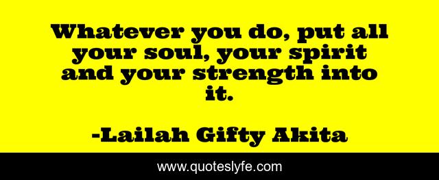 This page presents the quote "Whatever you do, put all your soul, your spirit and your strength into it.". Author of this quote is Lailah Gifty Akita. This quote is about work, passion, strength,.