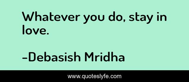 This page presents the quote "Whatever you do, stay in love.". Author of this quote is Debasish Mridha. This quote is about stay-in-love, love, philosophy, debasish-mridha, quotes, inspirational, enthusiasm, love-advice, debasish-mridha-m-d,.