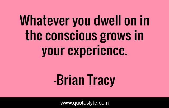 This page presents the quote "Whatever you dwell on in the conscious grows in your experience.". Author of this quote is Brian Tracy. This quote is about dwell, whatever,.