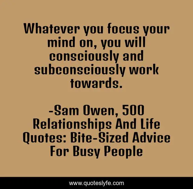 "Sam Owen, 500 Relationships And Life Quotes: Bite-Sized Advice For Busy People Quotes." Quoteslyfe.com, 2025. Sat. 06 Dec. 2025. <https://www.quoteslyfe.com/quote/Whatever-you-focus-your-mind-on-you-35756>.