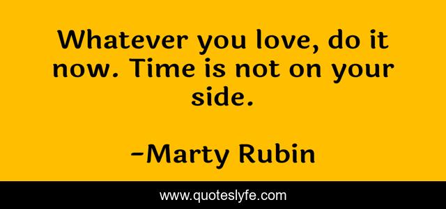 This page presents the quote "Whatever you love, do it now. Time is not on your side.". Author of this quote is Marty Rubin. This quote is about action, now, love, affection, time,.