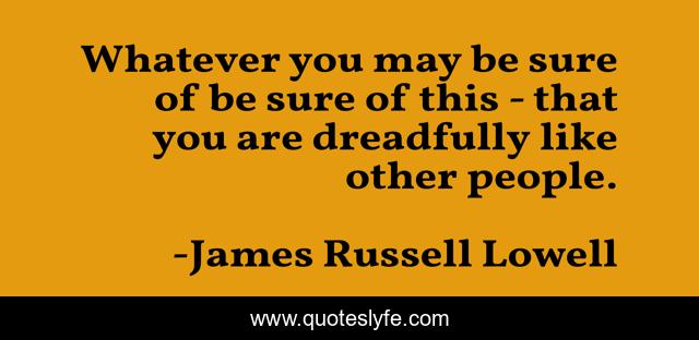 This page presents the quote "Whatever you may be sure of be sure of this - that you are dreadfully like other people.". Author of this quote is James Russell Lowell. This quote is about self, knowledge,.