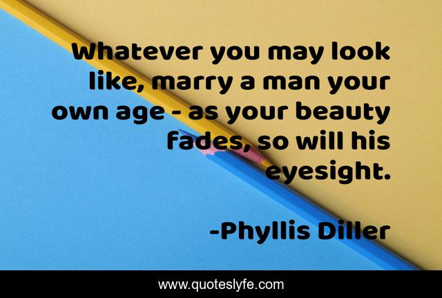 This page presents the quote "Whatever you may look like, marry a man your own age - as your beauty fades, so will his eyesight.". Author of this quote is Phyllis Diller. This quote is about beauty, man,.