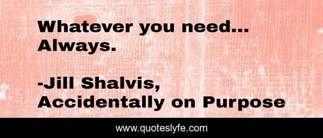 "Jill Shalvis, Accidentally on Purpose Quotes." Quoteslyfe.com, 2025. Mon. 08 Dec. 2025. <https://www.quoteslyfe.com/quote/Whatever-you-need-Always-154673>.