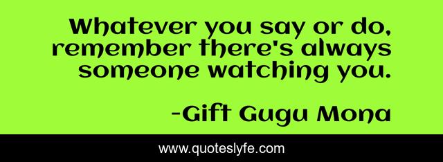This page presents the quote "Whatever you say or do, remember there's always someone watching you.". Author of this quote is Gift Gugu Mona. This quote is about someone, remember, watching-you,.