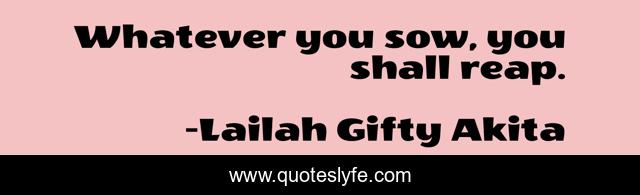 "Lailah Gifty Akita Quotes." Quoteslyfe.com, 2025. Mon. 08 Dec. 2025. <https://www.quoteslyfe.com/quote/Whatever-you-sow-you-shall-reap-169063>.