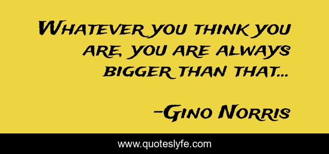 This page presents the quote "Whatever you think you are, you are always bigger than that...". Author of this quote is Gino Norris. This quote is about be, motivation, belief, goals, inspirational, enthusiasm, achieve,.