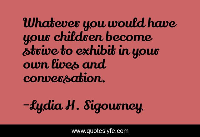 This page presents the quote "Whatever you would have your children become strive to exhibit in your own lives and conversation.". Author of this quote is Lydia H. Sigourney. .
