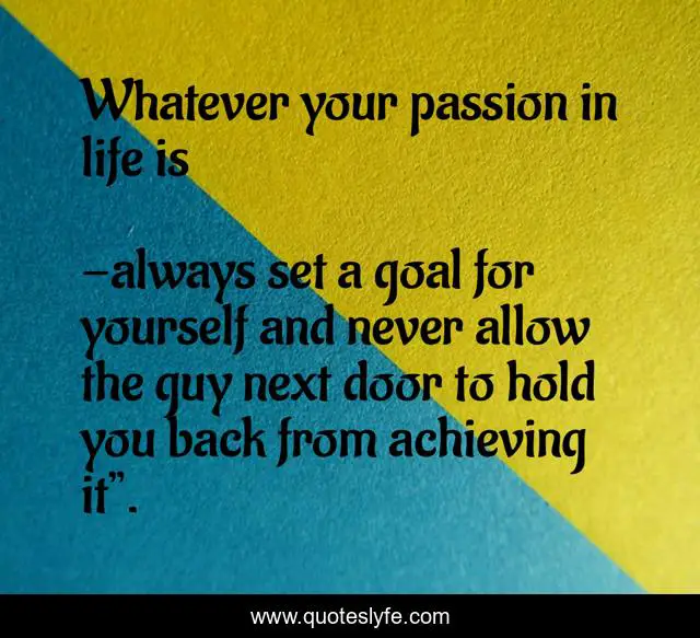 "always set a goal for yourself and never allow the guy next door to hold you back from achieving it”. Quotes." Quoteslyfe.com, 2025. Mon. 08 Dec. 2025. <https://www.quoteslyfe.com/quote/Whatever-your-passion-in-life-is-84105>.