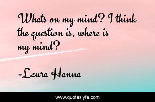 This page presents the quote "Whats on my mind? I think the question is, where is my mind?". Author of this quote is Laura Hanna. This quote is about life, humor, questions, thoughts, mindfulness,.