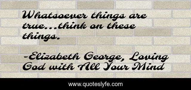 "Elizabeth George, Loving God with All Your Mind Quotes." Quoteslyfe.com, 2025. Sat. 06 Dec. 2025. <https://www.quoteslyfe.com/quote/Whatsoever-things-are-true-think-on-these-87914>.
