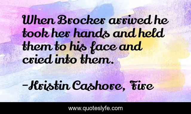 This page presents the quote "When Brocker arrived he took her hands and held them to his face and cried into them.". Author of this quote is Kristin Cashore, Fire. This quote is about fire, brocker, sad,.