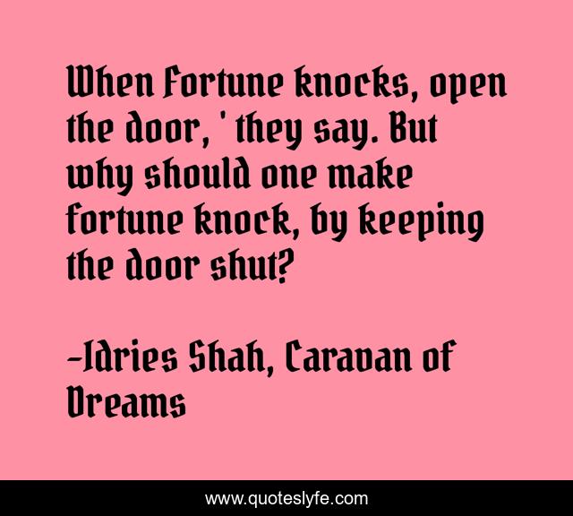 "Idries Shah, Caravan of Dreams Quotes." Quoteslyfe.com, 2025. Fri. 05 Dec. 2025. <https://www.quoteslyfe.com/quote/When-Fortune-knocks-open-the-door-they-107523>.