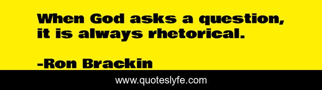 This page presents the quote "When God asks a question, it is always rhetorical.". Author of this quote is Ron Brackin. This quote is about omniscience, god, knowledge,.