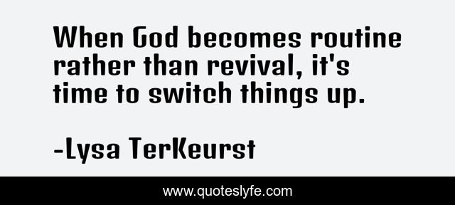 This page presents the quote "When God becomes routine rather than revival, it's time to switch things up.". Author of this quote is Lysa TerKeurst. This quote is about god, spiritual-wisdom, religion,.