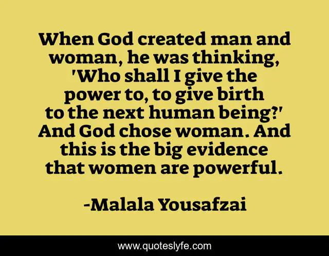 "Malala Yousafzai Quotes." Quoteslyfe.com, 2025. Sat. 06 Dec. 2025. <https://www.quoteslyfe.com/quote/When-God-created-man-and-woman-he-302241>.