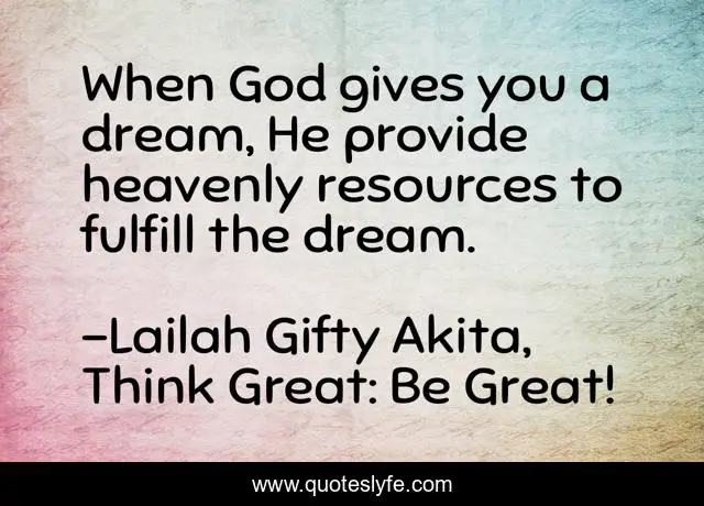 "Lailah Gifty Akita, Think Great: Be Great! Quotes." Quoteslyfe.com, 2025. Tue. 09 Dec. 2025. <https://www.quoteslyfe.com/quote/When-God-gives-you-a-dream-He-98867>.