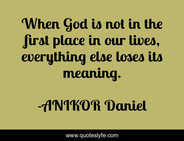 This page presents the quote "When God is not in the first place in our lives, everything else loses its meaning.". Author of this quote is ANIKOR Daniel. .