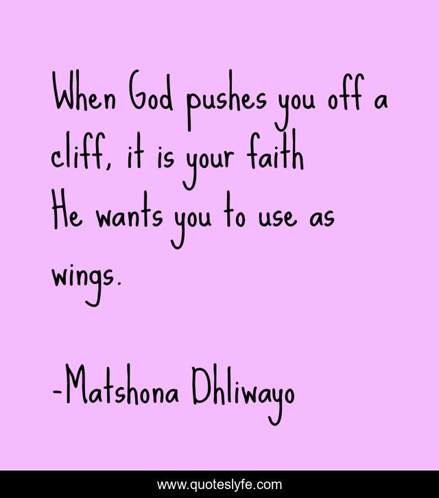 "Matshona Dhliwayo Quotes." Quoteslyfe.com, 2025. Sun. 07 Dec. 2025. <https://www.quoteslyfe.com/quote/When-God-pushes-you-off-a-cliff-225304>.