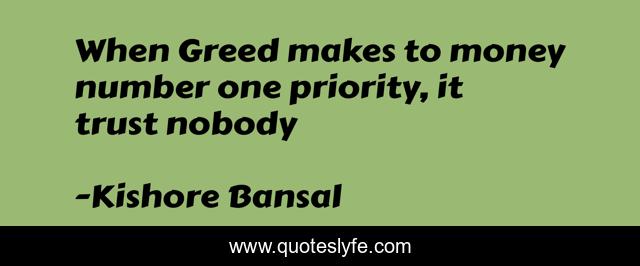 This page presents the quote "When Greed makes to money number one priority, it trust nobody". Author of this quote is Kishore Bansal. This quote is about priority, money, number, greed,.