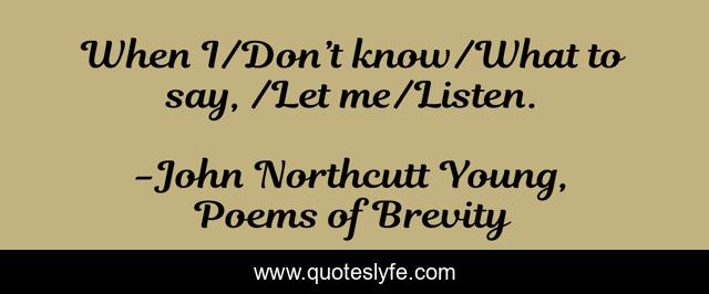 This page presents the quote "When I/Don’t know/What to say, /Let me/Listen.". Author of this quote is John Northcutt Young, Poems of Brevity. .