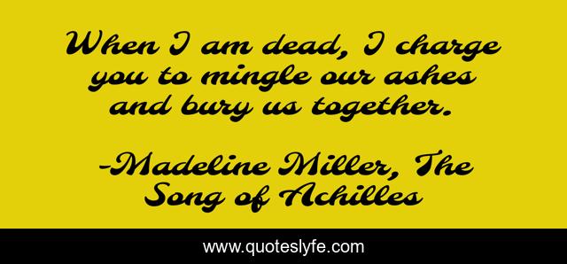 This page presents the quote "When I am dead, I charge you to mingle our ashes and bury us together.". Author of this quote is Madeline Miller, The Song of Achilles. This quote is about patroclus, dead, ashes, burried-together, achilles, patrochilles,.