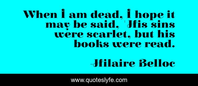This page presents the quote "When I am dead, I hope it may be said, 'His sins were scarlet, but his books were read.". Author of this quote is Hilaire Belloc. This quote is about books, writing,.