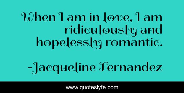 This page presents the quote "When I am in love, I am ridiculously and hopelessly romantic.". Author of this quote is Jacqueline Fernandez. This quote is about ridiculously, love, affection,.