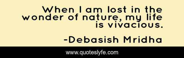 This page presents the quote "When I am lost in the wonder of nature, my life is vivacious.". Author of this quote is Debasish Mridha. This quote is about when-i-am-lost, wonder-of-nature, philosophy, debasish-mridha, vivacious, quotes, debasish-mridha-md, inspirational, enthusiasm,.